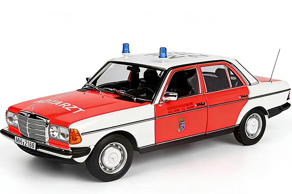 This is a 1/18 scale diecast metal model of original car, Mercedes-Benz 200, appeared in the market in 1984